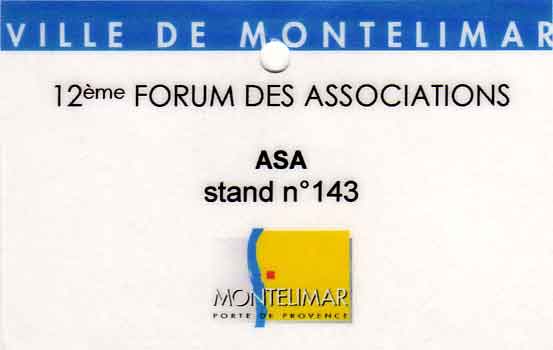 Le samedi 10 et dimanche 11 septembre 2005 a eu lieu à l'Espace Mistral de Montélimar le 12ème Forum des Associations. L'ASA Montélimar avait son stand parmi 170 autres associations présentes.
